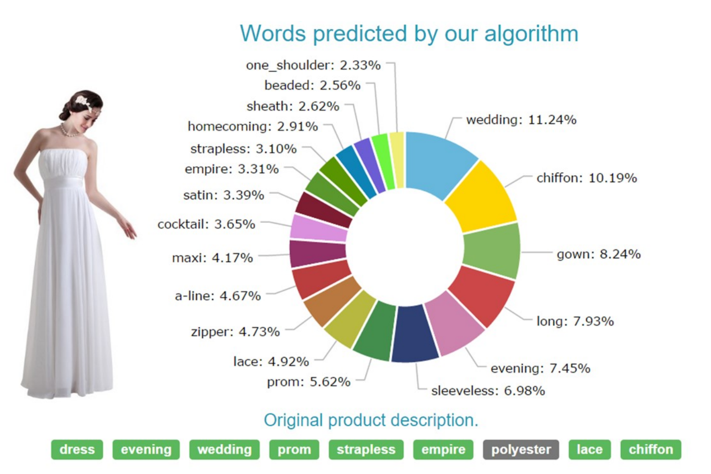 At Macty, we developed a novel in-store experience, where users can upload images of outfits and we suggest lingerie to pair it with. Our ‘Complete the Look’ application inspires customers while helping sellers increase the findability of their products and stimulate sales.” We use advanced image recognition to detect visual attributes from outfits and lingerie to pair them together. Here’s a demo of what this looks like: