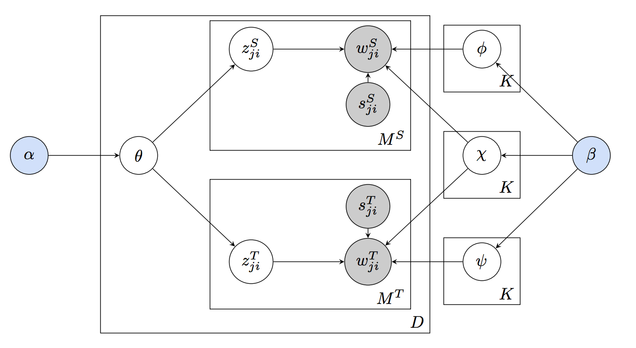 We study the problem of linking information between different idiomatic usages of the same language, for example, colloquial and formal language. We propose a novel probabilistic topic model called multi-idiomatic LDA (MiLDA). Its modeling principles follow the intuition that certain words are shared between two idioms of the same language, while other words are non-shared. We demonstrate the ability of our model to learn relations between cross-idiomatic topics in a dataset containing product …